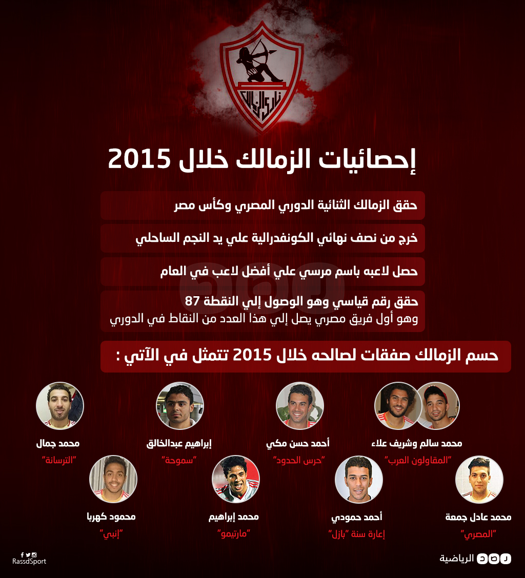 حقق نادي الزمالك بطولات وأرقامًا جديدة تضاف لتاريخه الكروي خلال عام 2015.