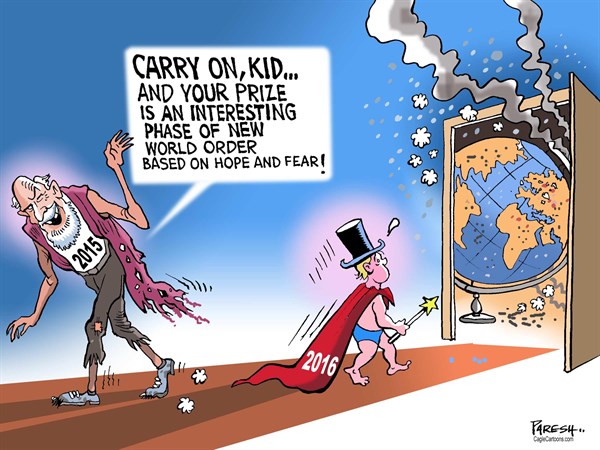 بالصور.. 2015 و2016 في رسوم الكاريكاتير