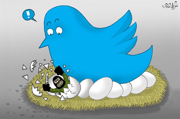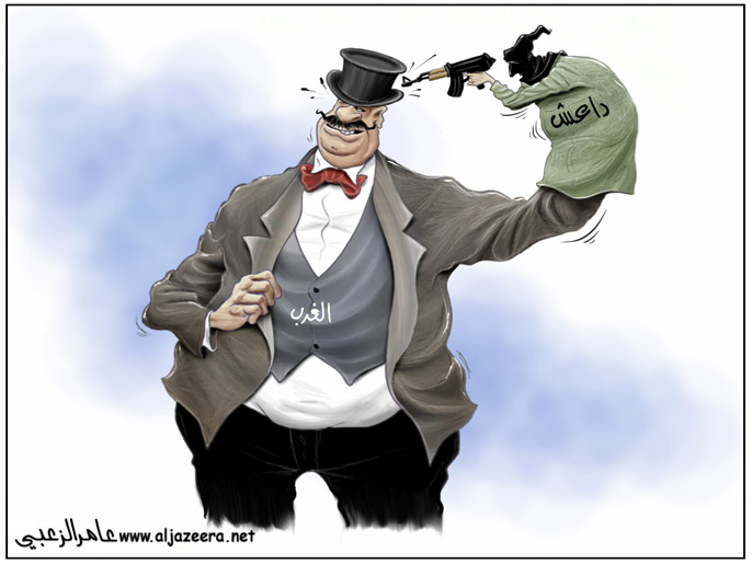 اما موقع “الجزيرة دوت نت” فسخر من تنظيم الدولة والغرب بهذا الرسم: