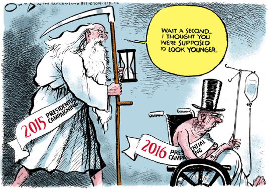 كما نشر موقع “بولتيكال كارتونز” هذا الرسم عن رحيل 2015 وبداية 2016: