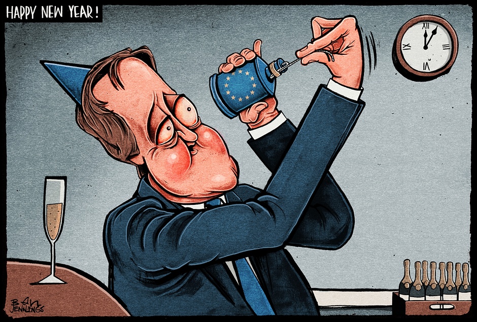 وسخرت جريدة “الجارديان” البريطانية من احتفال ديفيد كاميرون برأس السنة بهذا الرسم: