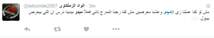 كما كان لمغردي موقع التدوين المصغر “تويتر” نصيب من السخرية حيث دشن المغردون هاشتاج “ميدو” للتعليق على قرار تعيينه مديرا فنيا للفريق: