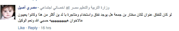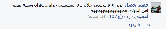 وأثار موضوع الخطبة سخرية رواد موقع “فيس بوك”؛ حيث قال حساب “فصبر جميل”: “الخروج على مرسي حلال.. وعلى السيسي حرام… قرآن وسنة بفهم أمن الدولة”.