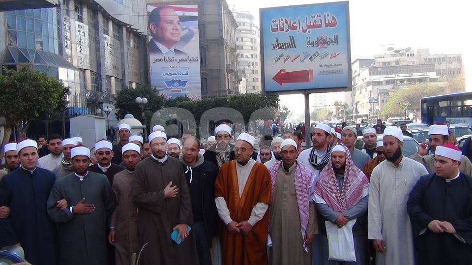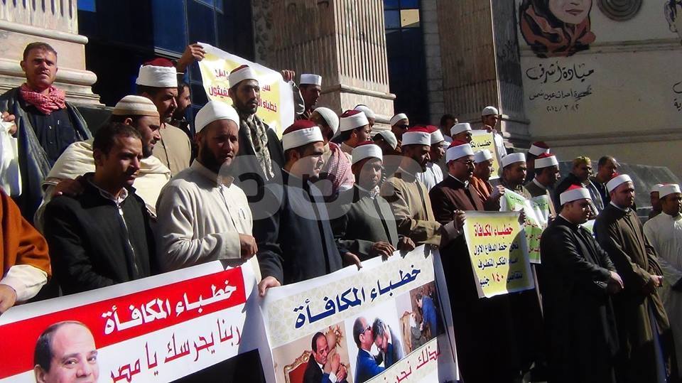 نظم عدد من الأئمة العاملين بالمكافأة في وزارة الأوقاف مسيرة احتجاجية من أمام مسجد الفتح برمسيس متجهة إلى نقابة الصحفيين؛ للمطالبة بمساواتهم بزملائهم الأئمة المعينين، وصرف مكافأة مجلس الوزراء.