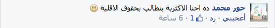 وعلقت “حور محمد” بقولها: “ده احنا الأكثرية بنطالب بحقوق الأقلية”.