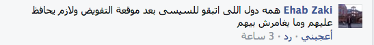 ورأى إيهاب زكي، أن الأقباط “همه دول اللي اتبقو للسيسي بعد موقعة التفويض ولازم يحافظ عليهم وما يغامرش بيهم”.