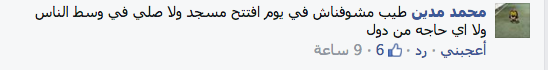 وقال “محمد مدين”: “طيب مشوفناش في يوم افتتح مسجد ولا صلى في وسط الناس ولا أي حاجة من دول”.