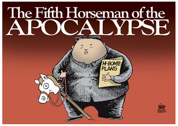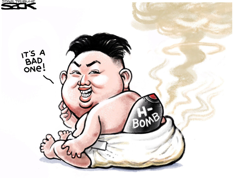 وقدم موقع “ذا وييك” الأميركي هذا الرسم ساخرا من قنبلة كوريا الهيدروجينية: