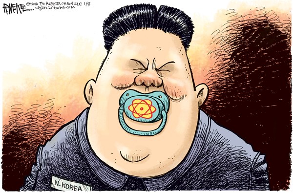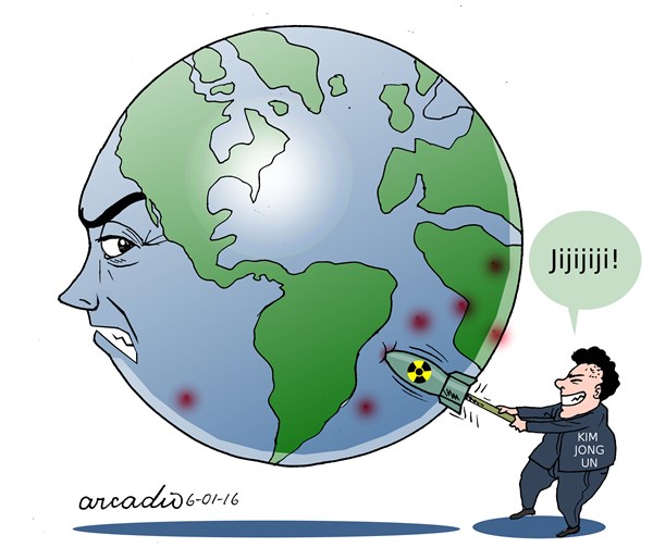 وعن إجراء الرئيس الكوري لتجربة إطلاق قنبلة هيدروجينية ناجحة نشر “بولتيكال كارتونز” هذ الرسم: