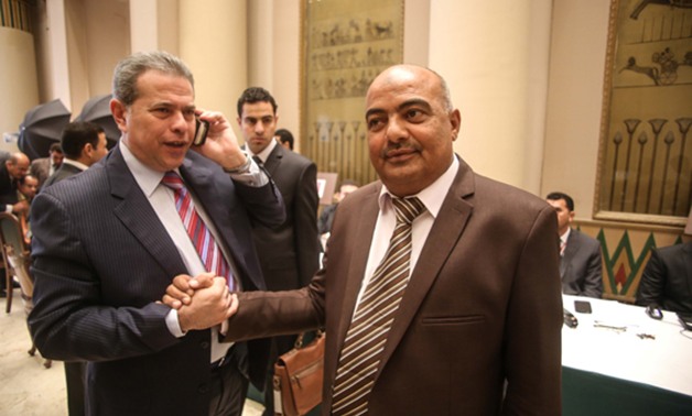 فيما ظهرت صورة النائب، أثناء لقائه بالنائب توفيق عكاشة داخل المجلس أثناء فترات الاستراحة.
