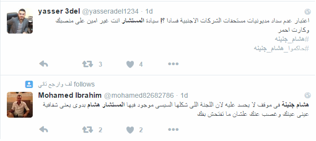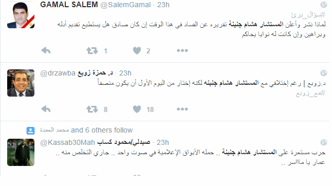 دشن رواد موقع التواصل الإجتماعي "تويتر" هاشتاجا تحت عنوان" هشام جنينه"؛ وذلك عقب اتهام لجنة تقصي الحقائق لـ"جنينة" بالتضليل.