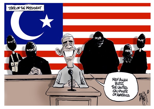 ونشر موقع “بولتيكال كارتونز” هذا الرسم ساخرا من علاقة أوباما بتنظيم الدولة: