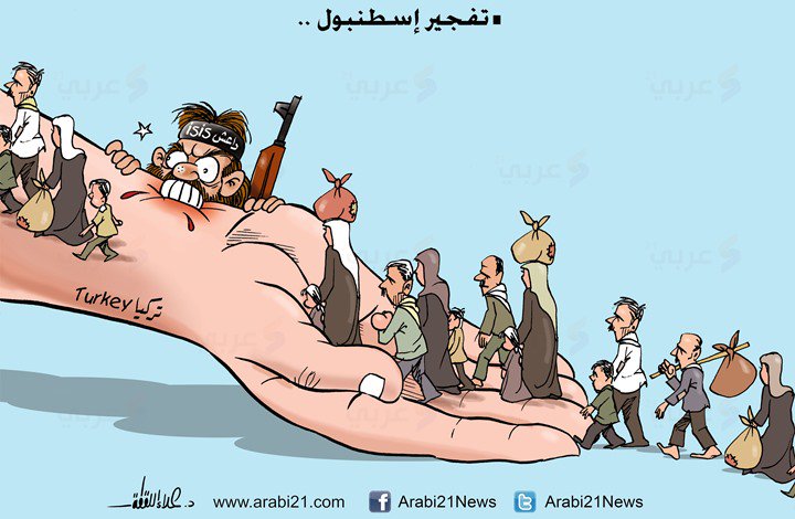 فنشر موقع “عربي 21” هذا الرسم عن تفجير إسطنبول:
