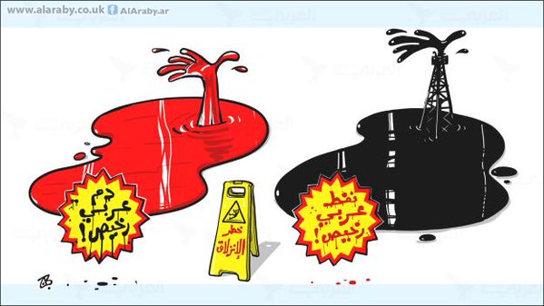 وعن انخفاض قيمة البترول وكذلك قيمة الدم العربي نشر موقع “العربي الجديد” هذا الرسم: