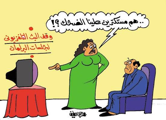 وعلقت جريدة “اليوم السابع” بهذا الرسم عن حزن المصريين لوقف بث جلسات برلمان السيسي: