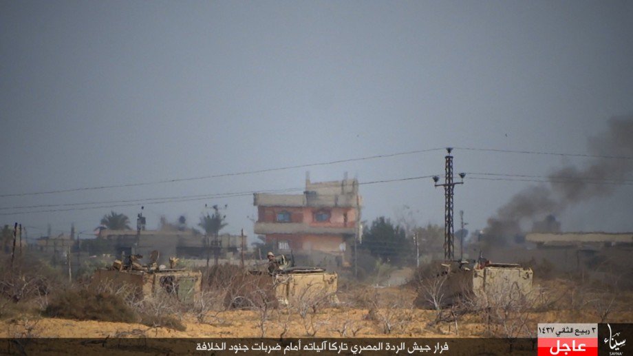نشرت ولاية سيناء التابعة لتنظيم الدولة، صورا عبر شبكة الإنترنت عبر مواقع تابعة للتنظيم، توضح عملية هجوم نفذها أنصار ولاية سيناء ضد الجيش المصري