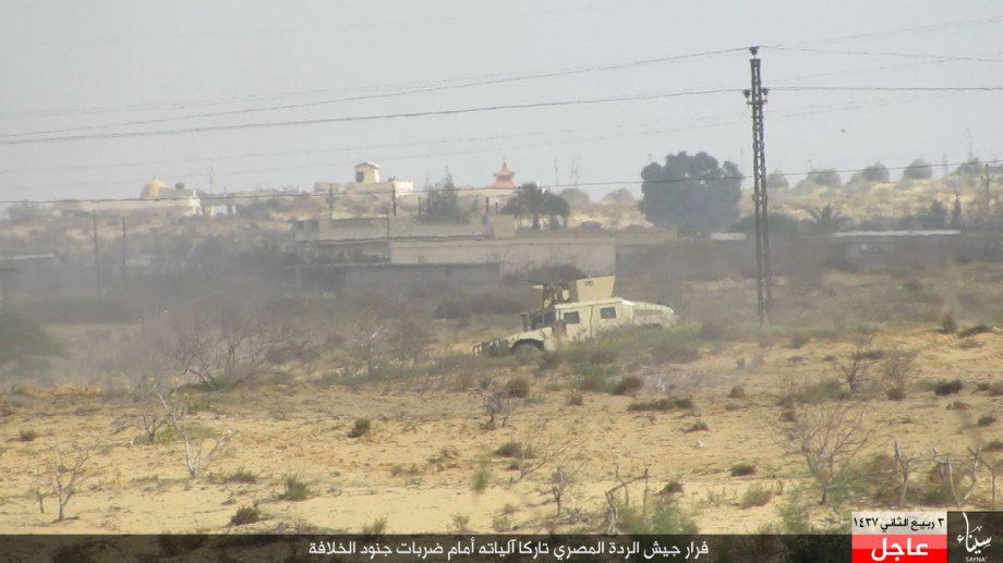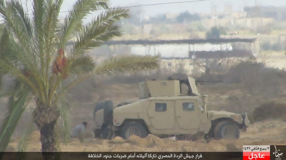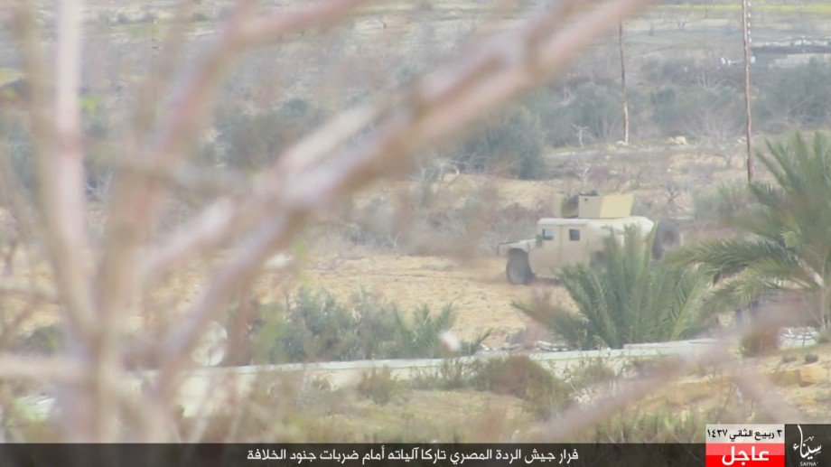 بالصور.. تنظيم الدولة ينشر صورا لهجومه على الجيش المصري وفرار الجنود