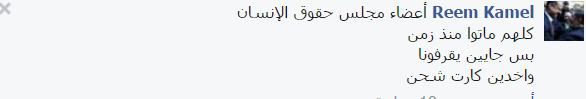 :Reem Kamel أعضاء مجلس حقوق الإنسان كلهم ماتوا منذ زمن، بس جايين يقرفونا، واخدين كارت شحن