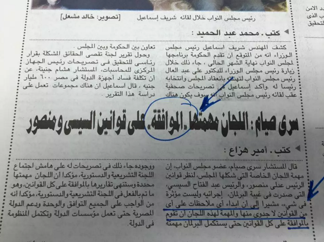 وتداول رواد موقع التواصل الاجتماعي “فيس بوك” خبرًا للمستشار سري صيام، عضو اللجنة التشريعية بالمجلس، قال فيه إن مهمة لجان المجلس فيما يتعلق بالقوانين إجرائية فقط، وأن دور اللجان هو الموافقة على القوانين فقط لا غير.