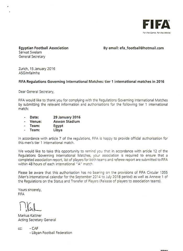 وكان إيهاب لهيطة، مدير المنتخب الوطني، قد أرسل عدة خطابات إلى الاتحاد الدولي، من أجل الموافقة على اعتماد لقاءي المنتخب في يناير ضمن لقاءات الأجندة الدولية.