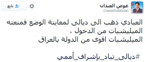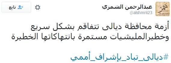 وقال المدون عبدالرحمن الشمري، إن أزمة محافظة ديالى تتفاقم بشكل سريع،
