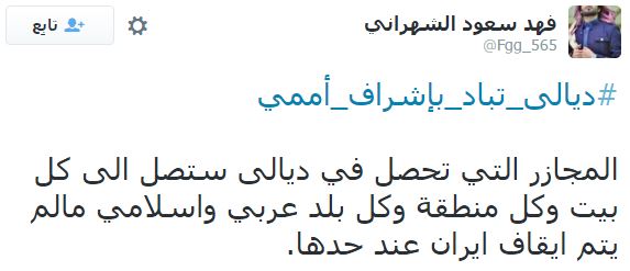 وأعرب فهد سعود الشهراني، عن استياءه مما يحدث في ديالي قائلًا،