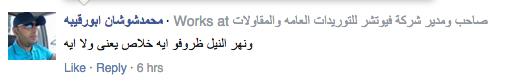 وقال محمد شومان أبو رقيبة: “ونهر النيل ظروفه إيه خلاص يعني ولا إيه”.