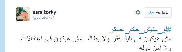 sara torky: “مش هيكون في البلد فقر ولا بطالة مش هيكون في اعتقالات ولا أمن دولة”.