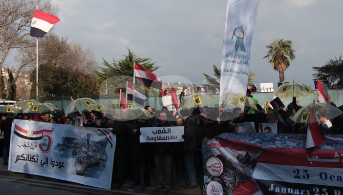 نظم عدد من المصريين المقيمين بمدينة إسطنبول التركية، تظاهرة رافضة للانقلاب بجوار أسوار القنصلية المصرية في إسطنبول، وذلك بمناسبة ذكرى ثورة الخامس والعشرين من يناير.