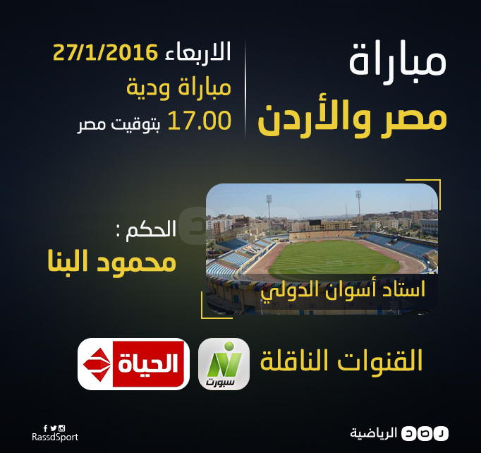 يخوض منتخب مصر الأول لكرة القدم مباراة ودية غدًا مع نظيره الأردني، حيث يجتمع الفريقان على ملعب أسوان