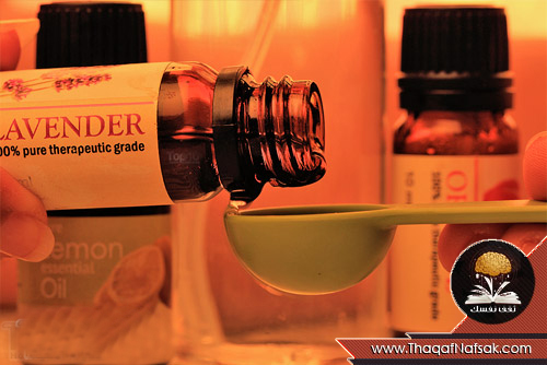 2. إضافة ¾ ملعقة صغيرة من زيت اللافندر الأساسي.
