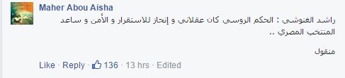 -ماهر أبو عيشة : ” راشد الغنوشي : الحكم الروسي كان عقلاني و إنحاز للاستقرار و الأمن و ساعد المنتخب المصري”.