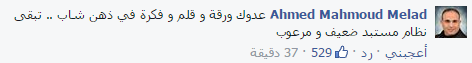 – Ahmed : ” عدوك ورقة و قلم و فكرة في ذهن شاب .. تبقى نظام مستبد ضعيف و مرعوب “