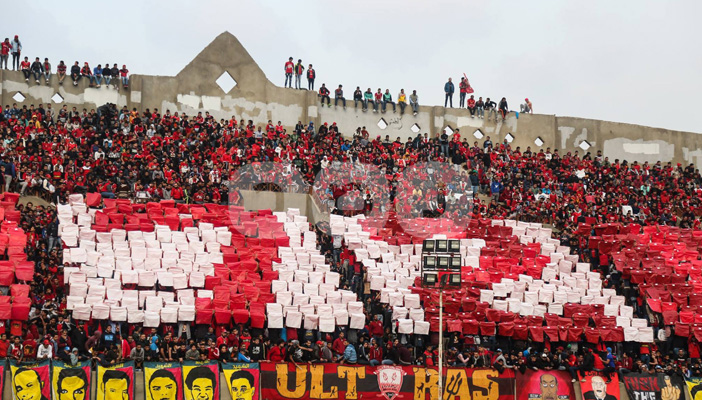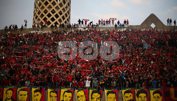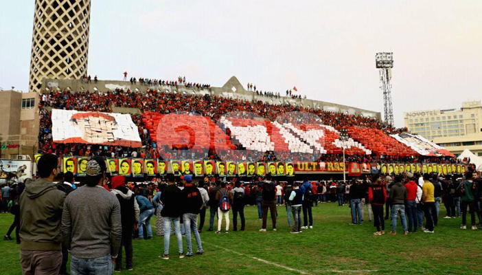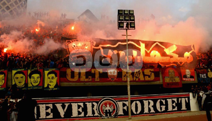 ورفعت الجماهير لافتات مطالبة بالقصاص لأصدقاءهم الذين قتلوا على غدرًا في مباراة الأهلي مع المصري البورسعيدي عام 2012.