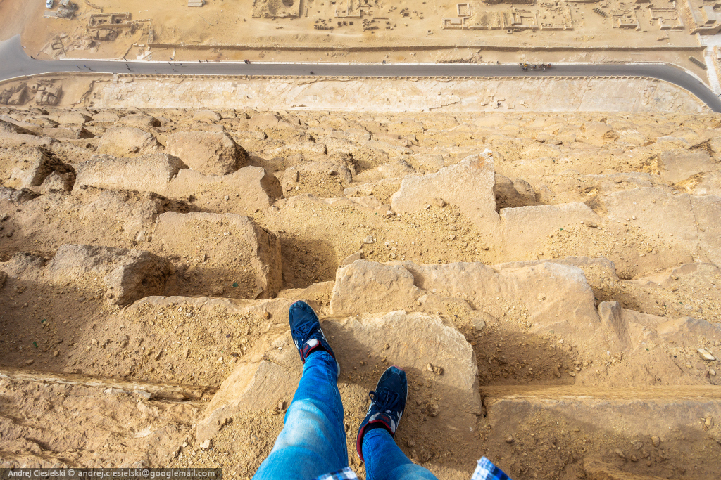 وعن أهم جزء من الرحلة يقول “أندري”، “ذهبت إلى الأهرامات بتاكسي، وتجولت في المنطقة إلى أن انتظرت اللحظة المناسبة لبدء التسلق، وعندما بدأت التسلق كان هناك بائع متجول يقف خلفي، لكني لم أهتم به، وضحك وبدأت في التسلق، وفي المنتصف نظر إلي بعض الناس ولهذا السبب رأتني الشرطة، وصاحوا بكلمات عربية لكني لم أهتم واستغرق صعود الهرم ثماني دقائق، واستغرق النزول عشرون دقيقة، فالسلامة أهم شيء”.