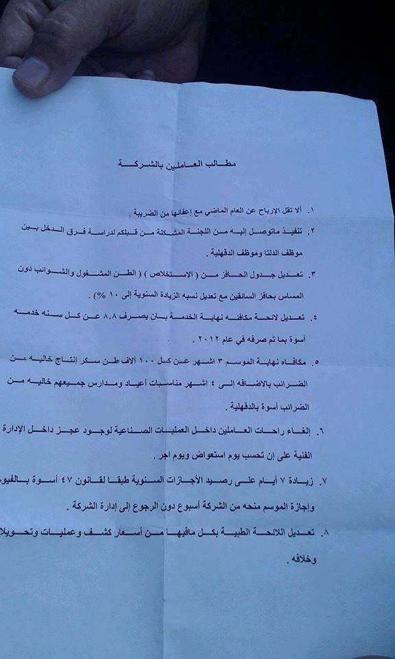 وتمثلت مطالب العمال في 8 مطالب؛ هي كالآتي، بحسب نص بيان العمال: