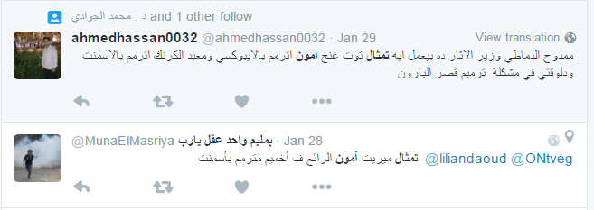 تداول مستخدمو مواقع التواصل الاجتماعي صورة لتمثال المعبود آمون في معبد الكرنك بمدينة الأقصر بقدم مشوهة، حيث قالوا إن المرممين التابعين لوزارة الآثار حاولوا استكمال الجزء الأسفل للتمثال إلا أنهم فشلوا وظهر التمثال بشكل مشوه يسئ للآثار المصرية وسمعة مصر السياحية.