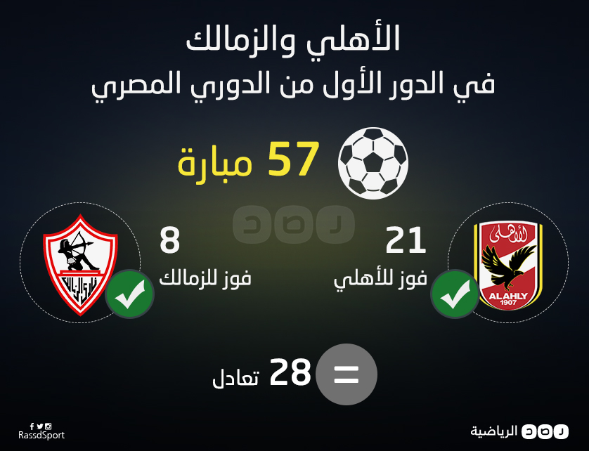 قدم النادي الأهلي وغريمه التقليدي الزمالك عروضًا خلال 57 مباراة للفريقين في الدور الأول من الدوري المصري، نستعرضها في الإنفوجرافيك التالي:
