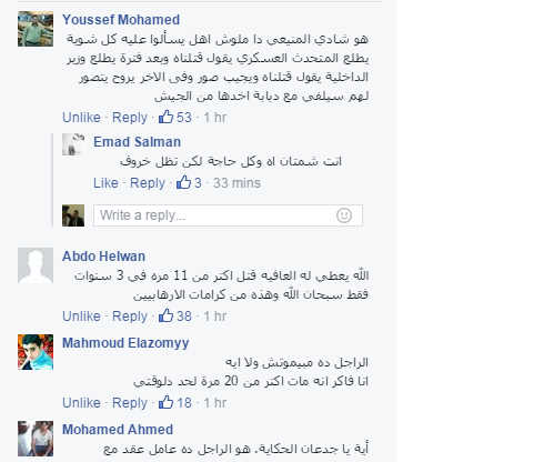 وكتب أيمن القصاص: “الواد ده مات قبل كده كذا مره بس عفارم على الجيش بتاعنا انه كل ما يتقتل ويطلع من حته تانيه يقتلوه برضوا يارب المره الجايه يموت ونخلص منه خالص”.
