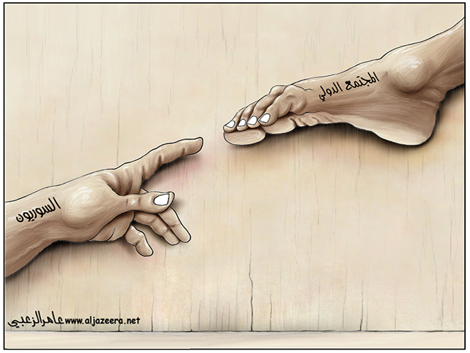 ونشر موقع “الجزيرة دونت نت” هذا الرسم عن حال المجتمع الدولي تجاه الشعب السوري: