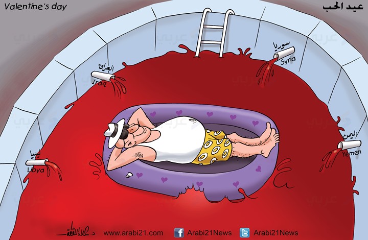 وقدم موقع “عربي 21” رسمًا عن حمام الدماء العالمي في عيد الحب: