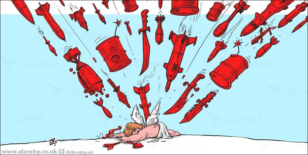 ونشر أيضًا موقع “العربي الجديد” هذا الرسم عن حال العالم في عيد الحب: