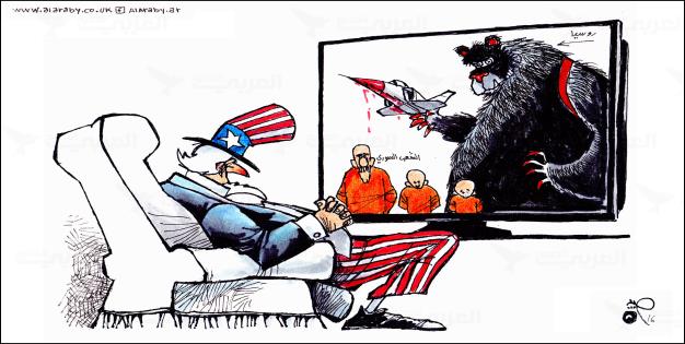 فنشر موقع “بوليتيكال كارتونز” رسما عن إشعال بشار الأسد فتيل أزمة عالمية: