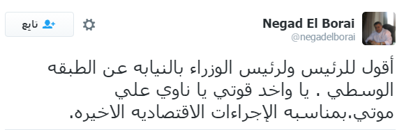 وجه الناشط الحقوقي نجاد البرعي كلمة لعبدالفتاح السيسي ورئيس الوزراء المهندس شريف إسماعيل نيابة عن الطبقة الوسطى.