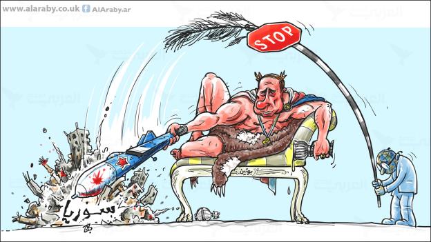 ونشر موقع “العربي الجديد” رسما ساخرا من دور العالم السلبي أمام إبادة بوتين لسوريا: