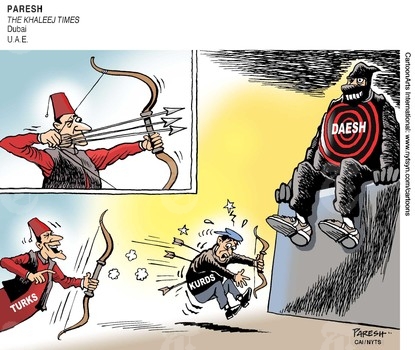 ونشرت صحيفة “نيويورك تايمز” هذا الرسم ساخرة من حرب تركيا ضد تنظيم الدولة: