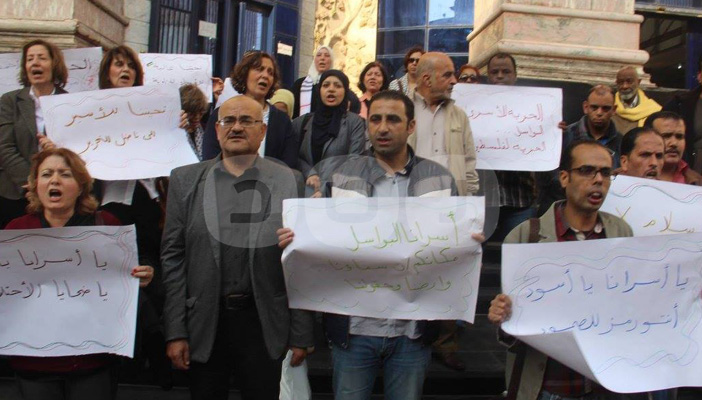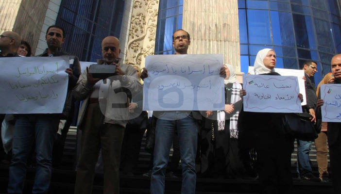 نظم العشرات من الفلسطينيين المقيمين بمصر بالتعاون مع اتحاد المرأة الفلسطينية التابع لحركة فتح، وقفة احتجاجية أمام نقابة الصحفيين اليوم للتنديد باعتقال الفلسطينيين في سجون الاحتلال، ولإلقاء الضوء على قضية الأسير الصحفي “محمد القيق” على خلفية اعتقاله إداريا من قبل قوات الاحتلال دون وجه حق.