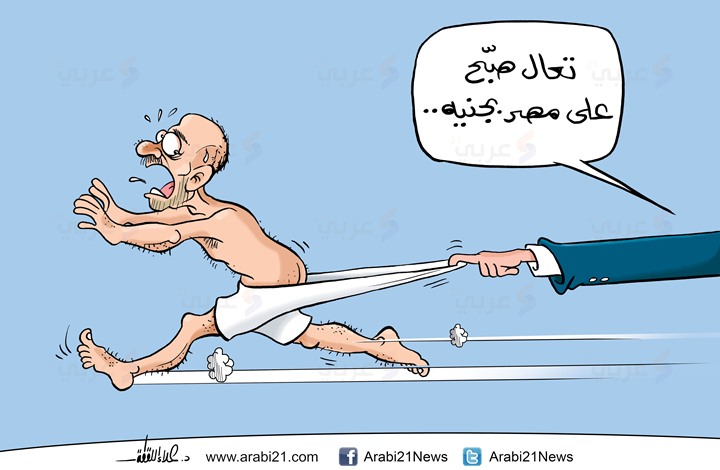 كما نشر موقع “عربي 21” رسما يسخر من حملة “صبح على مصر بجنيه” التي أطلقها السيسي وجاء الرسم كالآتي:
