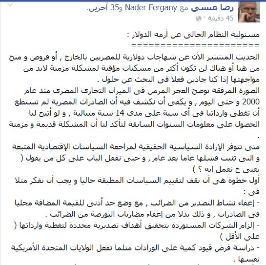 وتساءل “عيسى”: “متى تتوفر الإرادة السياسية الحقيقية لمراجعة السياسات الاقتصادية المتبعة والتي تثبت فشلها عامًا بعد عام، وحتى نقفل الباب على كل من يقول (يعنى ح نعمل إيه؟(“.