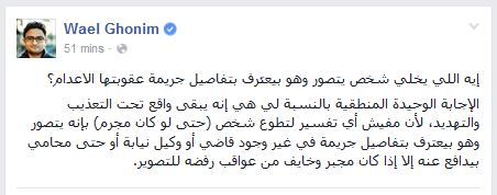 وتساءل غنيم في تعليقه “عن السبب الذي يجعل شخصا وإن كان قاتلاً حقيقًا، للاعتراف بجريمة في فيديو مسجل، دون وجود قاض أو محقق، أو حتى محاميه الخاص، سوى أن يكون اعترافه هذا خوفًا من عاقبة رفضه الاعتراف”.